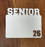 MDF Sublimation Photo Blank Has the Letters SENIOR Across the Top and the Numbers "25" Out of the bottom corner