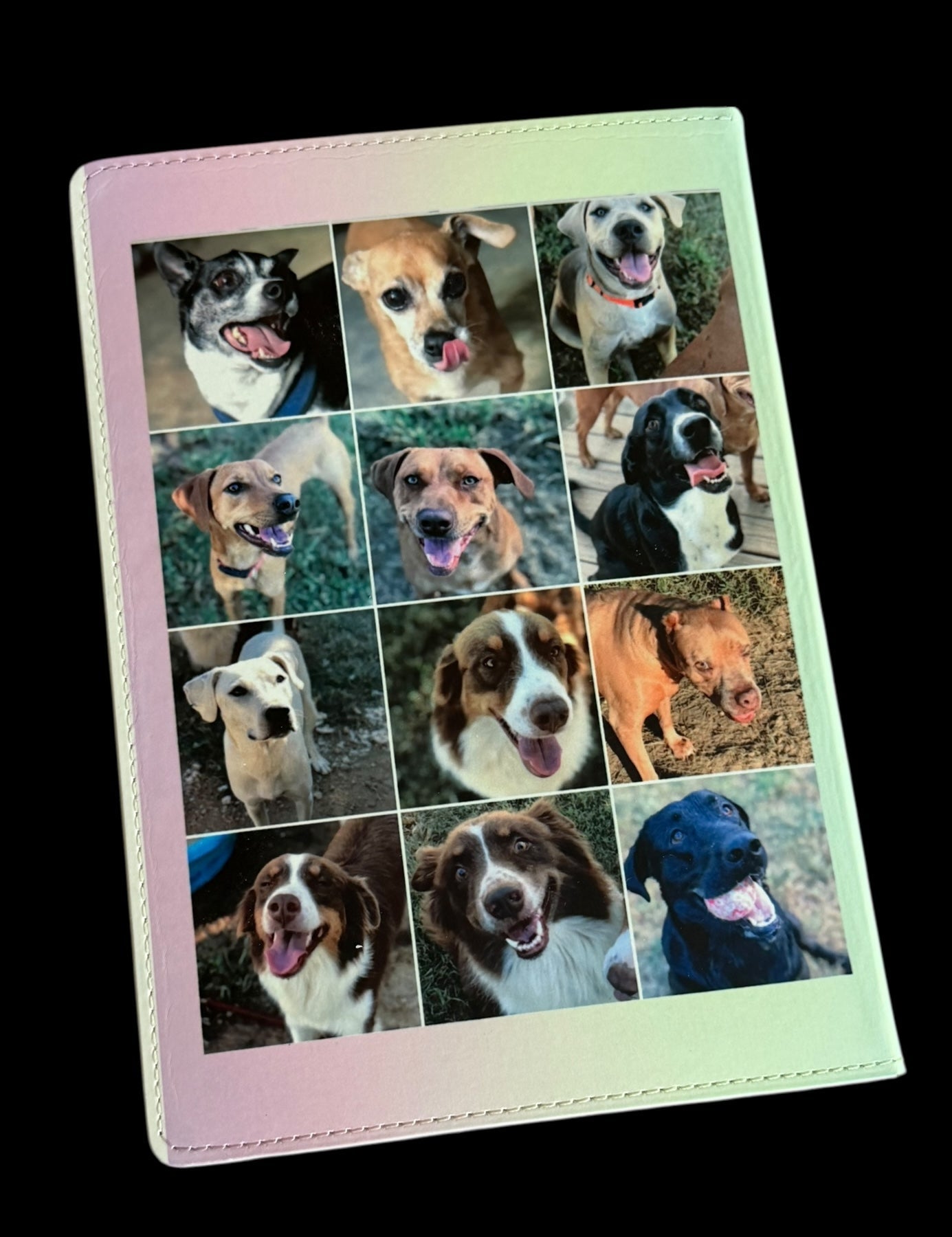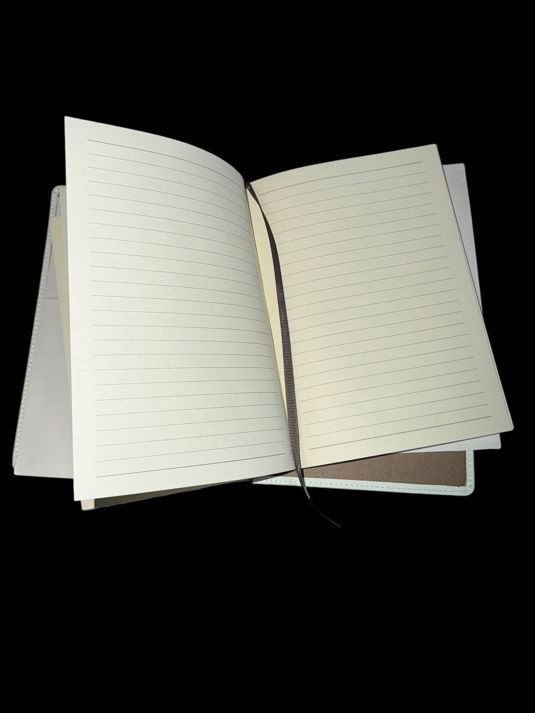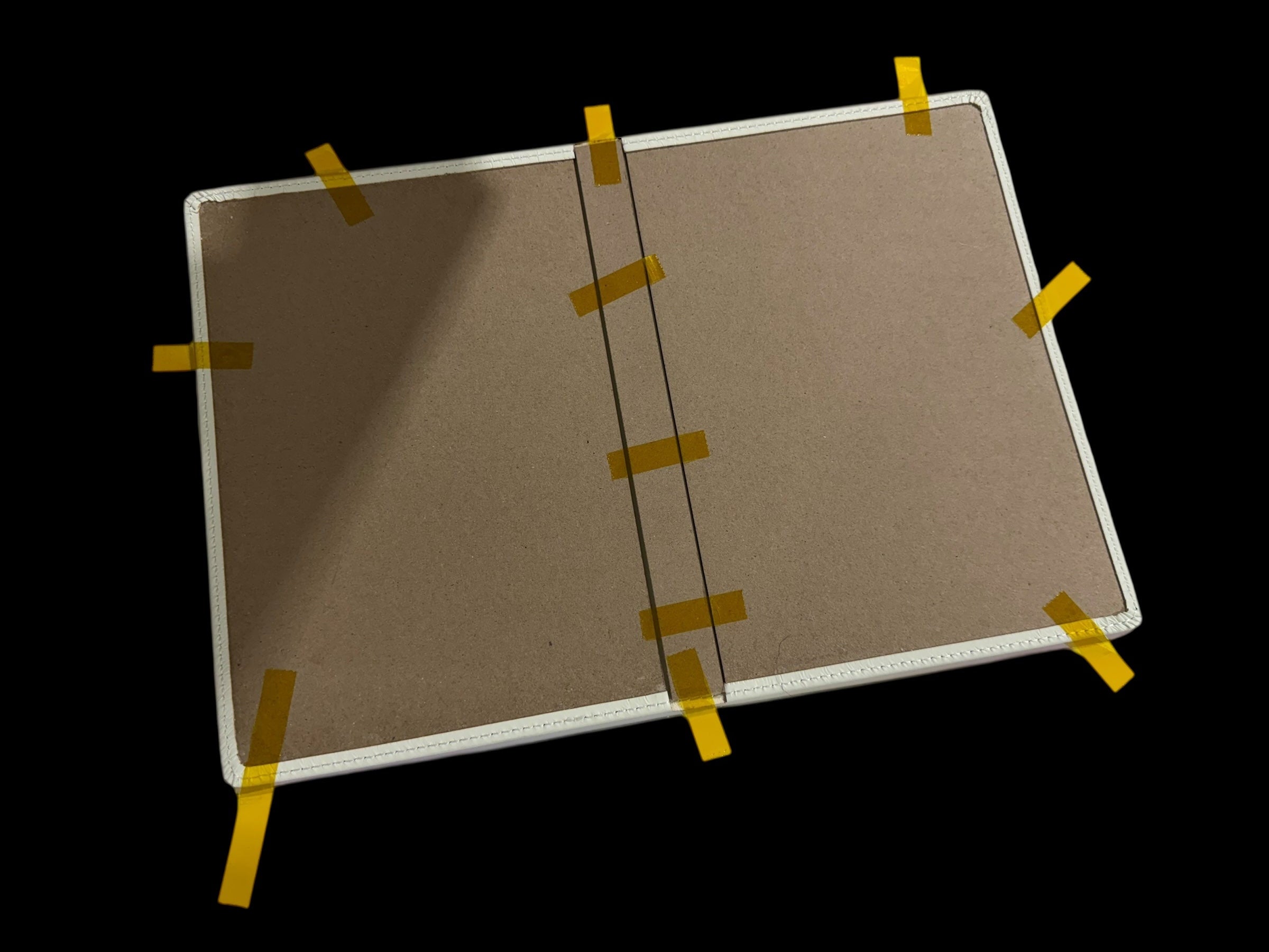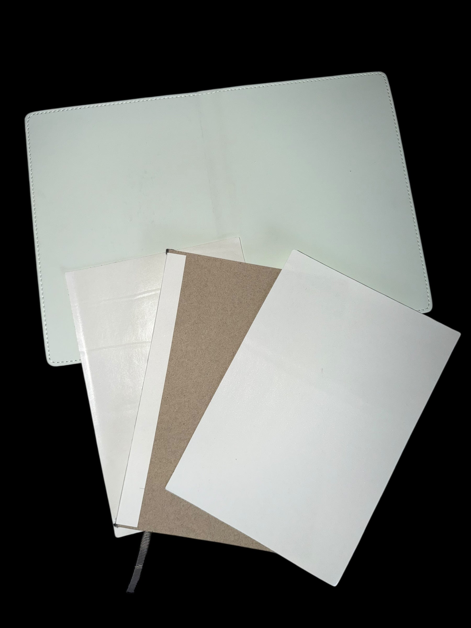 Sublimate Faux Leather Cover (Make sure to use the cardoard strip included to put in spine to ensure an even press - See Photo) - Press at 375F - 60 Seconds. Let cool. Use 2 sided adhesive sheets to attatch cover to the Notebook pages!