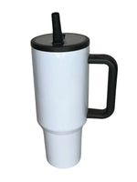 Flip Up Straw White 40 oz Sublimation Tumblers w/ Colored Handle and Lid
