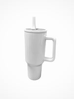 Flip Up Straw White 40 oz Sublimation Tumblers w/ Colored Handle and Lid
