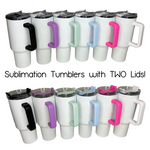 - Sublimation White 40 oz w/ Color Handle and TWO Lids